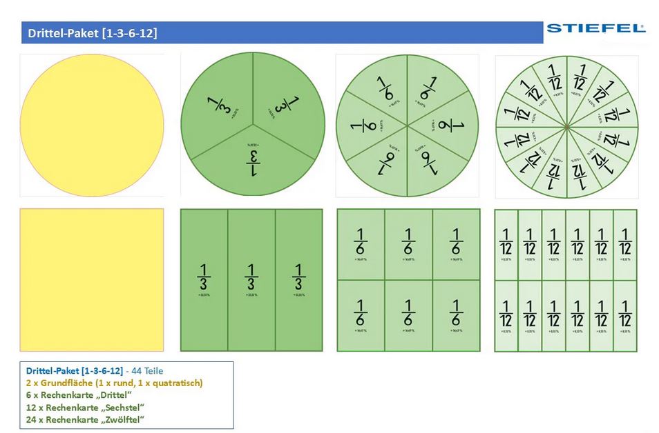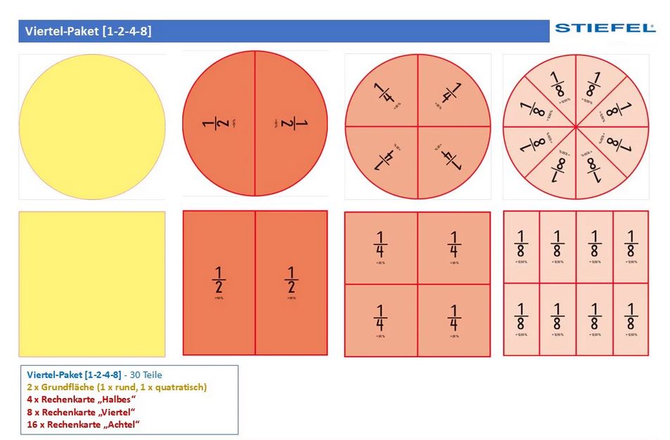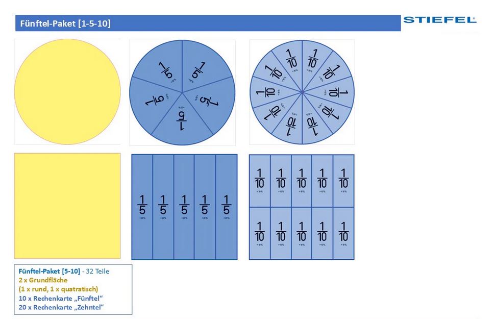 Bruchrechnen und Prozentrechnen wird mit diesen Lernspielsets nach dem Motto "begreifen" durch "angreifen" spielerisch geübt und das Erlernte vertieft.